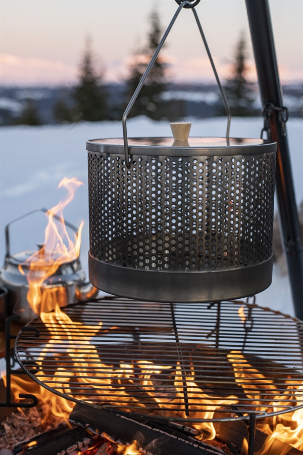 • Håndtag: Designet til hængning over åben ild