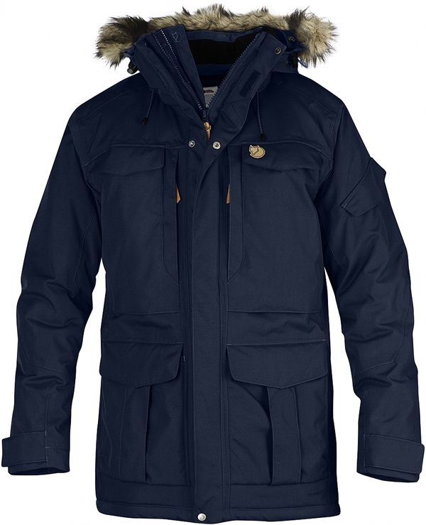 Fjällräven Nuuk Parka er designet til ekstreme vinterforhold og arktiske miljøer. Parkaen har et slidstærkt skalmateriale i polyamid, der modstår vejr og vind. Den syntetiske Supreme Micro Loft-isolering sikrer varme, selv under fugtige forhold, og den fleeceforede krave og hætte beskytter mod kulde. Hætten kan fjernes, er foret og har en justerbar kant. Med i alt elleve lommer giver den rigelig opbevaringsplads. Lukkes med en venstrehånds tovejslynlås, dækket af en beskyttelsesflap for ekstra modstandsdygtighed. Justerbare detaljer sikrer en tætsluttende pasform, hvilket gør den velegnet til barske udendørsaktiviteter.