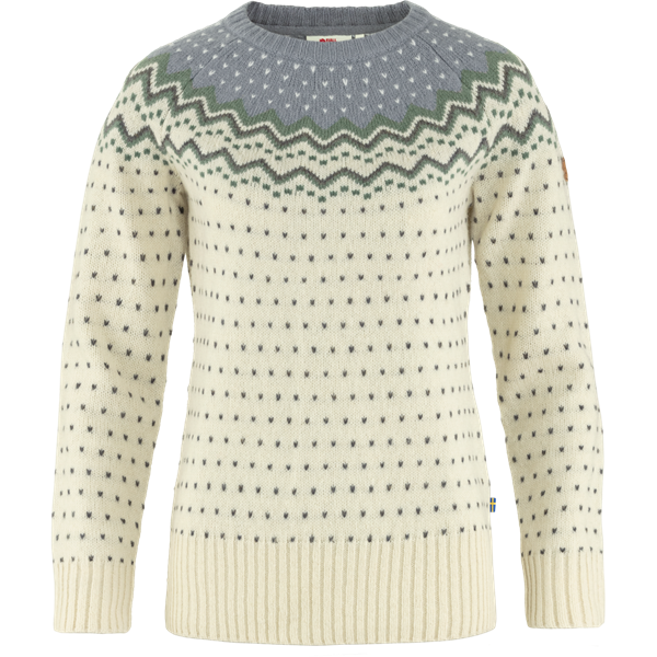 Fjällräven Övik Knit Sweater K er en børnestriktrøje lavet af 100% sporbar uld, som effektivt transporterer fugt og isolerer selv når den er våd. Trøjen har et klassisk jacquardmønster, rund hals og lange raglanærmer med forstærkede albuer. Ideel til hverdagsbrug og afslappede udendørsaktiviteter, fungerer den godt som et isolerende mellemlag. Fremstillet uden PFAS, og uldmaterialet er både certificeret og dyrevenligt.