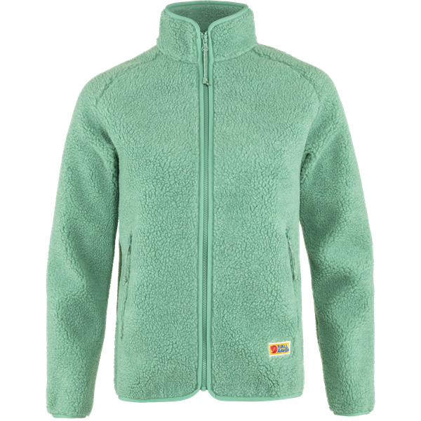 Jakken lukkes med en en-vejs lynlås foran, og de to lynlåslommer ved hænderne tilbyder praktisk opbevaring. Det strukturerede ydre og den fladstrikkede jersey inderside bidrager til en ekstra behagelig oplevelse. Elastisk kantbinding ved søm, krave og manchetter forstærker holdbarheden, mens det klassiske Fjällräven-logo fra 1970'erne pryder looket.