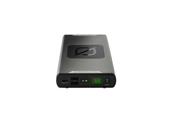 Lille Nebo powerbank med LED-strømindikator og flere porte.