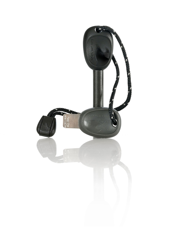 Ferrocerium stang med plastikgreb og integreret fløjte.